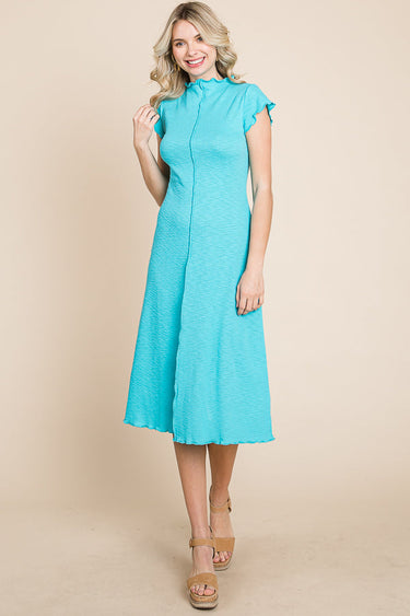 MOCK NECK CAP SLEEVE MIDI DRESS